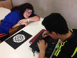 Los primeros días estuvimos dibujando nuestro diseño en la cartulina negra. Después empezamos a cortar nuestras creaciones, teniendo mucho cuidado!!!